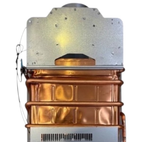 Материал теплообменника медь Oxygen Free отличается высокой теплопроводностью и долговечностью. Коллектор дымовых газов из оцинкованной стали делает конструкцию надёжной, а открытая камера сгорания и дымоходный отвод обеспечивают классическую, проверенную временем схему работы.