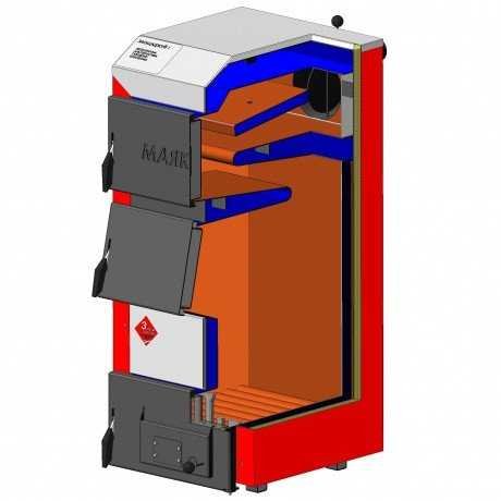 Котел Маяк оснащен чугунной колосниковой решеткой разделяющую топку на 2 части. В верхней части котла происходит процесс горения, а нижняя часть, которая называется зольным отделением, служит для сбора золы и сгоревших остатков топлива. Воздух, который подается из поддувала через решетку, напрямую попадает в зону горения, что существенно повышает продуктивность работы котла. При покупке котла получите скидку, предварительно по телефону