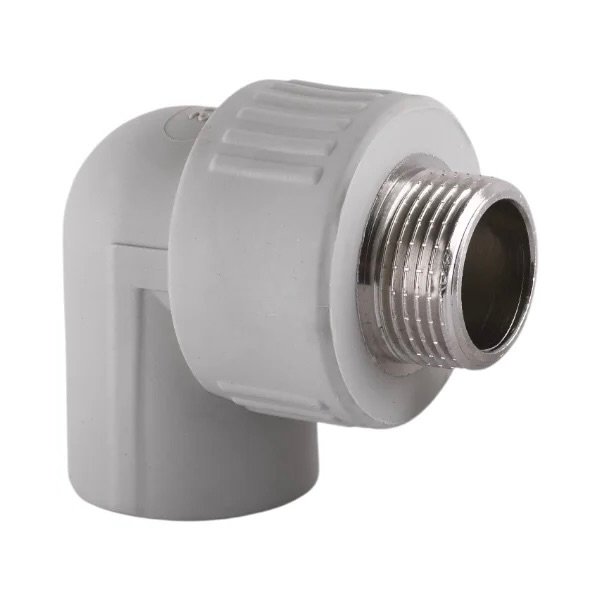 Комбинированный полипропиленовый фитинг с наружной резьбой предназначен для соединения трубопровода под углом 90° с элементами инженерной системы, имеющими внутреннюю резьбу. Применяется в системах холодного и горячего водоснабжения, отопления и других коммуникациях.