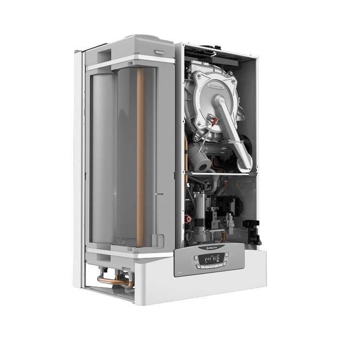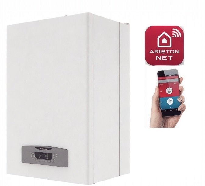 Конденсаційний комбінований газовий котел з вбудованим подвійним баком з нержавіючої сталі, готовий до дистанційного керування Ariston NET завдяки вбудованому wi-fi модему.