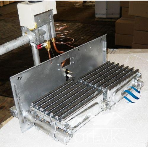 Теплообмінник виготовлений із високоякісної товстостінної сталі товщиною 3 мм. Конвективний теплообмінник оригінальної конструкції забезпечує максимальну тепловіддачу, компактні розміри, робочий тиск до 2 кгс/см2 дозволяє працювати з природною або примусовою циркуляцією теплоносія. Система безпеки EUROSIT Італія забезпечує надійну та безпечну роботу. Котли випускаються двостороннього виконання, що значно знижує витрати на монтаж системи опалення. Пальник розділений на кілька секцій, що при всіх режимах роботи забезпечує швидке та рівномірне поширення газу по всій вогневій поверхні пальника та рівномірне нагрівання теплообмінних поверхонь.