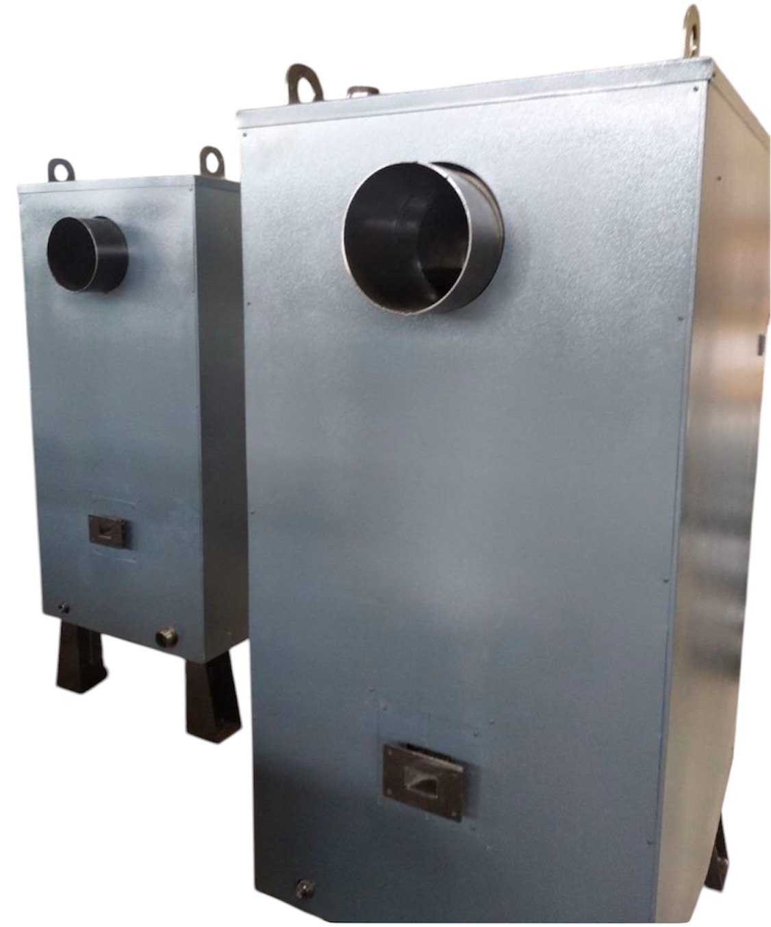 Твердопаливні котли KHORS M prom промисловий універсальним котлом з комбінованим трьох ходовим теплообмінником, тобто гарячі гази на шляху до димаря огинають полиці та труби наповнені водою. Вентилятор монтується на фланець насадну частину котла горизонтально повітроводу. Прогріте повітря надходить над водяним колосником через форсунку безпосередньо в зону горіння, покращуючи процес. Підтримка температури котла передбачає місце, куди підключається механічний регулятор тяги.
