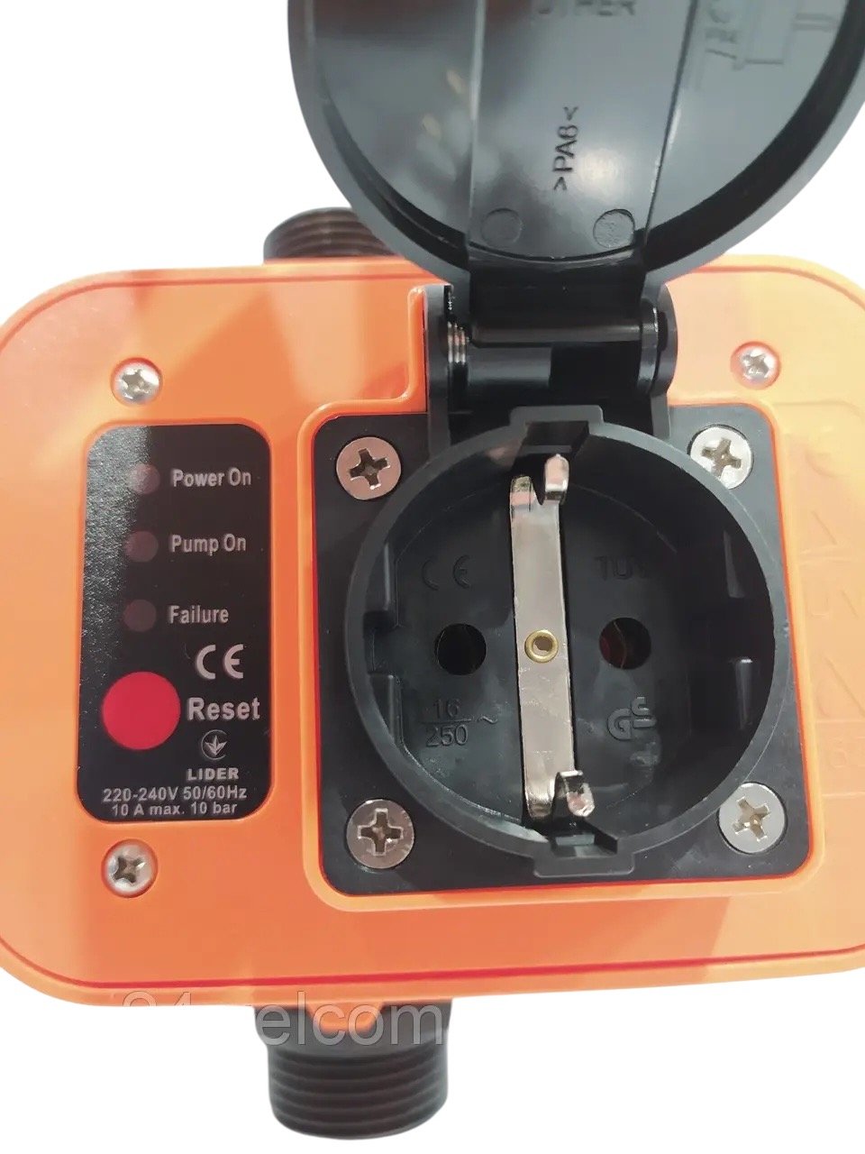 Корпус реле виготовлений з міцного пластику. Максимальний допустимий тиск 10 бар. Максимальна потужність насоса що підключається - 1.1 кВт. Максимальна температура навколишнього середовища для роботи 40 градусів за Цельсієм. Діаметр зєднання 1 дюй. Максимальний струм навантаження 10 Ампер. Робоча напруга мережі 230V - 50Hz.