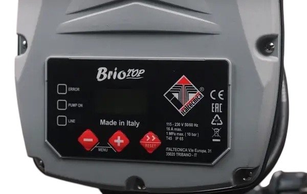 Brio-Top 2.0 програмується для роботи відповідно до двох різних принципів. Режим P+P тиск-тиск. У цьому режимі робота насоса регулюється всередині двома рівнями тиску Pmin та Pmax, досягнення нижнього порогу тиску Pmin визначає запуск насоса, а зупинка відбувається на верхньому порозі Pmax. Такий режим роботи аналогічний роботі механічного реле тиску, тому потрібне використання гідроакумулятора. Обєм гідроакумулятора в цьому випадку має бути більшим у кілька разів, ніж у режимі P+F. Розраховується обсяг гідроакумулятора, виходячи з потреб системи водопостачання. Робота станцій зі здвоєними насосами допускається тільки в режимі P+P. Режим P+F тиск - протока. У цьому режимі пристрій включає насос після падіння тиску в системі крани відкриті та вимикає його, коли потік рідини переривається при максимальному значенні тиску електричного насоса крани закриті. Такий режим роботи можливий без застосування гідроакумулятора, але для компенсації витоків рекомендується встановлення невеликого обєму гідроакумулятора 1 - 12 л. Вбудований відсік розміщення конденсатора насоса.
