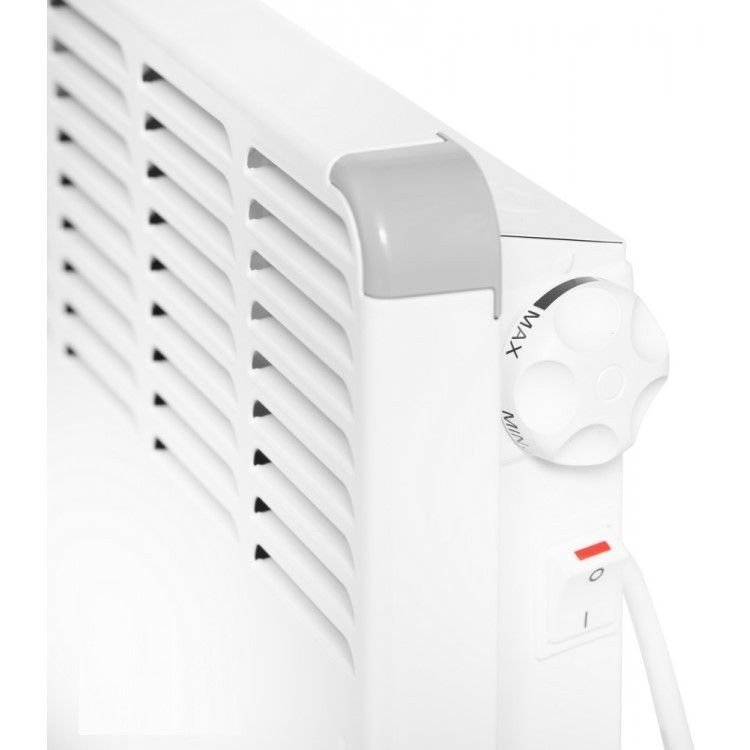 Конвектор оснащений закритим П-подібним нагрівальним елементом, який не пересушує повітря. Завдяки природній конвекції повітря конвектор швидко прогріває приміщення, навіть якщо в будинку або квартирі високі стелі. Ручка регулювання температури знаходиться на бічній панелі та дуже проста в управлінні.