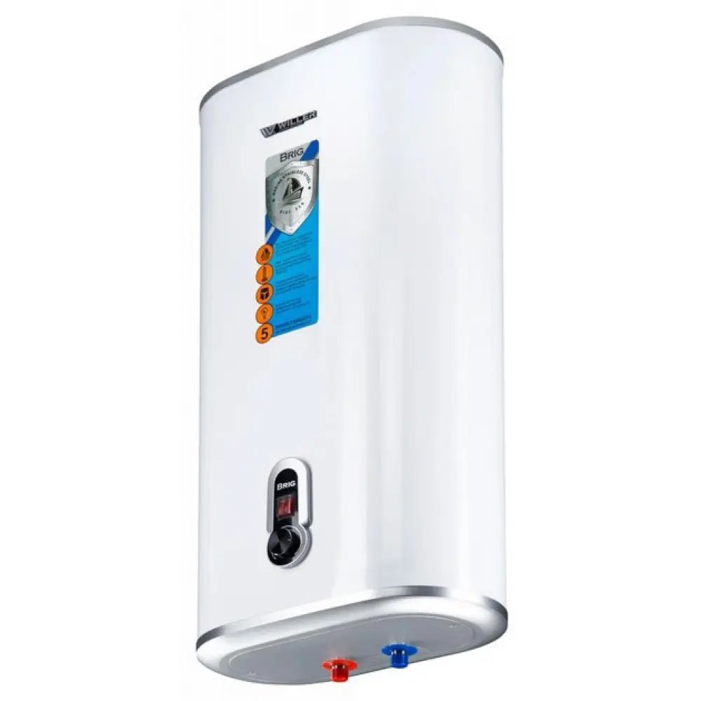 Willer IV80DR Brig - плоский електричний водонагрівач із внутрішнім баком із нержавіючої сталі AISI316 (відрізняється вищою антикорозійною стійкістю в порівнянні з поширеною AISI304). Мінімальна глибина виробу (260-295мм з урахуванням монтажних планок) дозволить встановити бойлер навіть у стиснених простором умовах. У бойлері Willer IV80DR Brig встановлені два сухі нагрівальні елементи потужністю 1000 Вт кожен. Нагрівальні елементи розташовані у спеціальних захисних кожухах (фланцях) і безпосередньо не контактують з водою, що значно збільшує їхню довговічність та економічність.